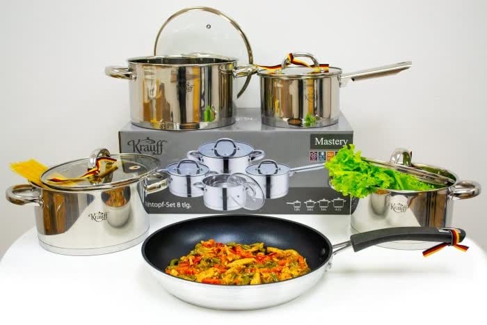 Кастрюли с многослойным дном (5 слоёв), которое обеспечивает превосходное распределение тепла.